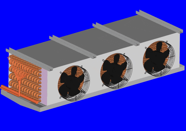 优点:冷风机主要靠对流换热,施工简便结构紧凑,占用冷库空间小,冷库使用空间受影响小。对库顶承重没有要求,在装配冷库和在小型的氟利昂冷库中比较常见。换热效率高,使用材料减少成本降低,空气由风扇强制循环,冷库降温速度较快。化霜方便易于控制,能实现自动控制,操作方便,容易管理。市场上一般为铜管铝翅片,承压较高,耐腐蚀性较强,不易泄露。