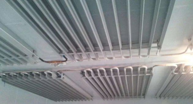 缺点:占据空间较大,一定情况下影响使用面积,主要靠辐射换热,不需要风扇,降温较风机较慢,结霜后化霜周期较长,一般一年两次。化霜可以扫霜、热氟化霜等。化霜水不易处理,铝排一般不是无缝管道,由于微观的热胀冷缩,时间长了容易有泄露,自身的换热效率较低,故前期投资较大。铝排适合用于冷冻库温度,否则有冷凝水产生,影响工作环境。